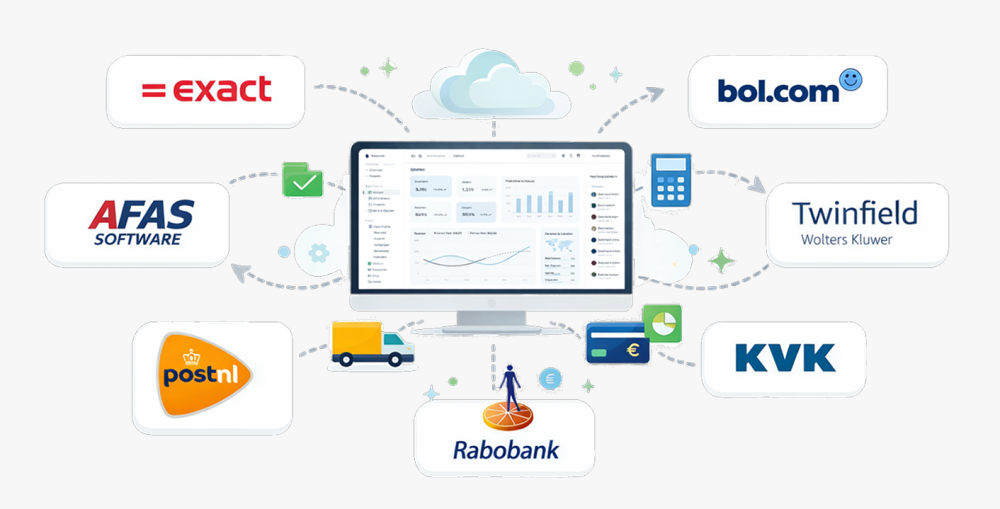 We maken koppelingen met boekhoudsoftware, CRM’s, API’s, planningstools en meer. Alles werkt samen in één systeem.