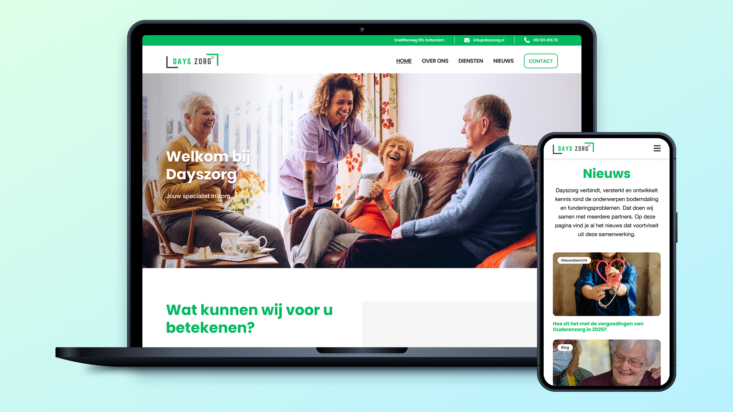 Days Zorg is een zorginstelling actief binnen de thuiszorg en begeleiding van mensen met een beperking. Voor nieuwe cliënten en instanties is online zichtbaarheid essentieel. Een duidelijke, professionele website was daarom geen luxe, maar een vereiste.